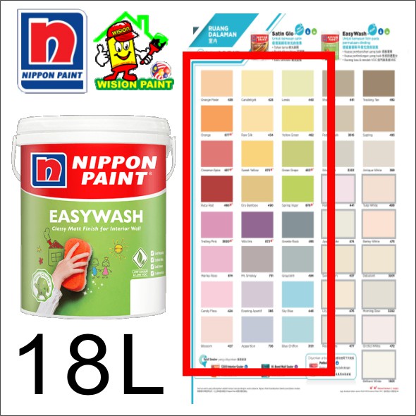 18l 18 Liter Easywash Nippon Paint Easy Wash Matt Finish Wall Paint Wpc C Shopee Malaysia